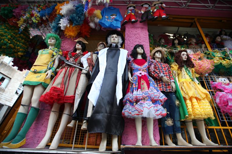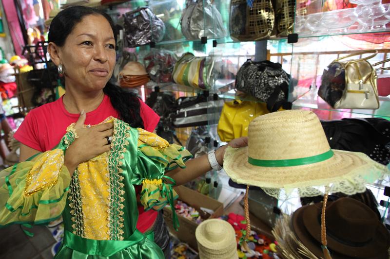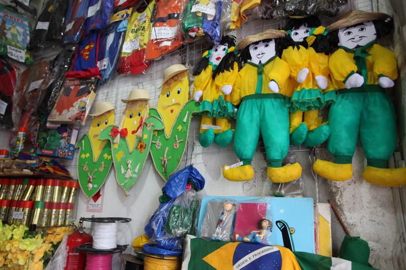 Por ser ano de ‘Copa do Mundo', a vendedora afirma que os vestidos com as cores da bandeira brasileira são os mais procurados. "O vestido que está saindo mais é de ‘rainha do milho', porque é verde e amarelo. Todo mundo quer ficar no clima da copa. Quando não é o vestido, é um enfeite verde e amarelo", acrescenta.