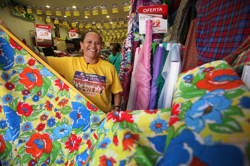 A vendedora de tecidos, Neucila Henrique, confirma a "febre de verde e amarelo". "Os tecidos que lembram a copa são os que mais estão saindo. Tanto para quadrilhas, quando para mães que vêm atrás de tecido para as fantasias dos filhos", confirma a vendedora, entre chitas e organzas.