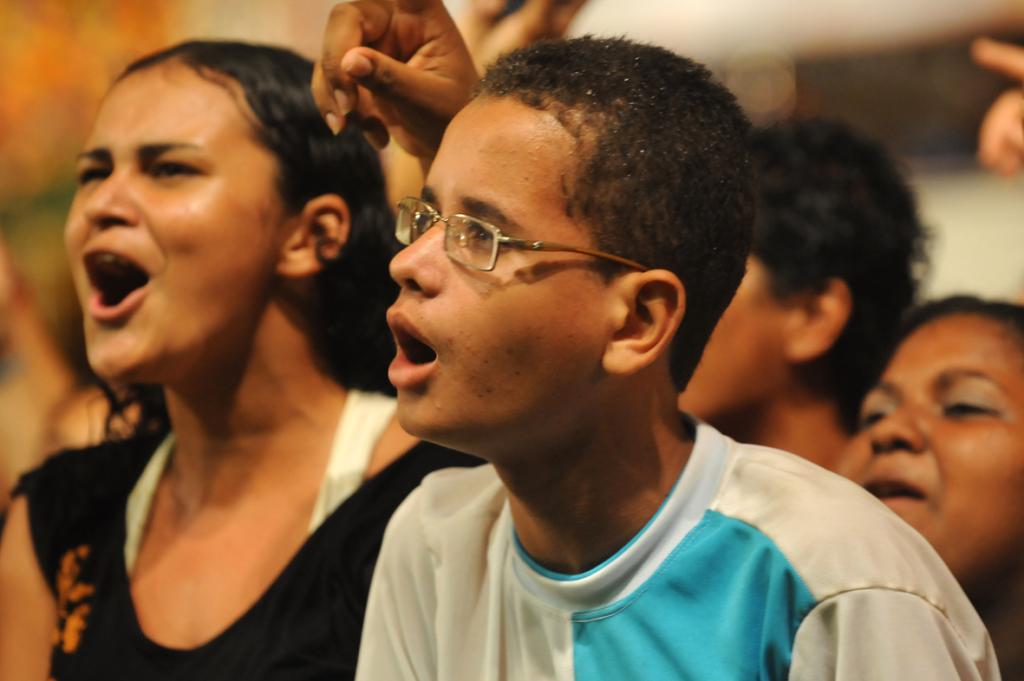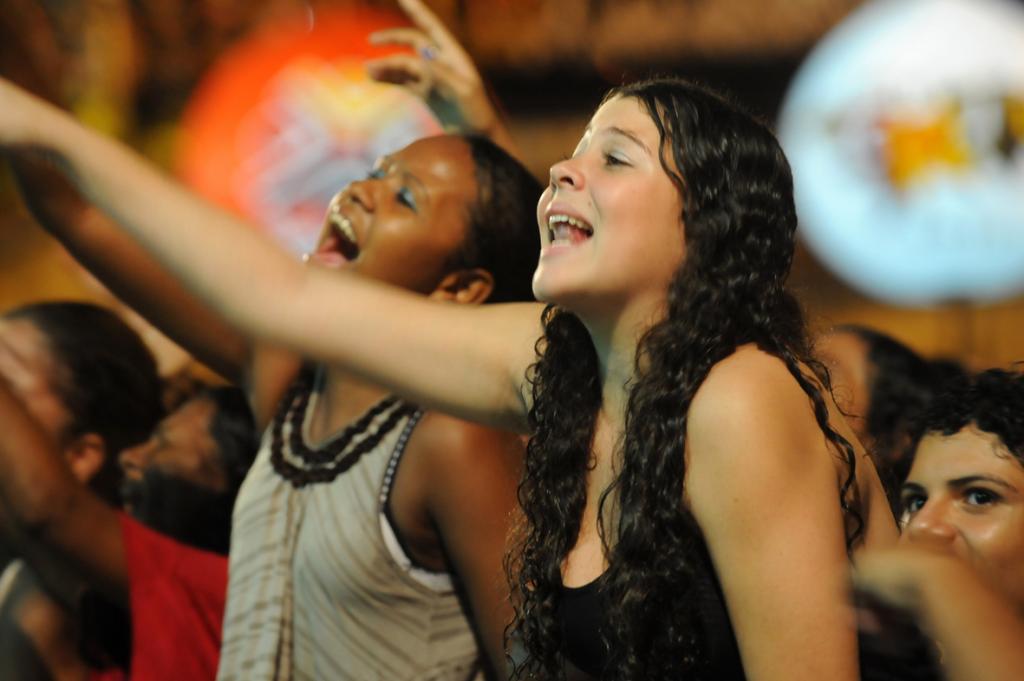 E C - Nós fazemos muito aquecimento vocal, bebemos muita água, além de manter uma alimentação equilibrada. O resto fica por conta da animação do público.