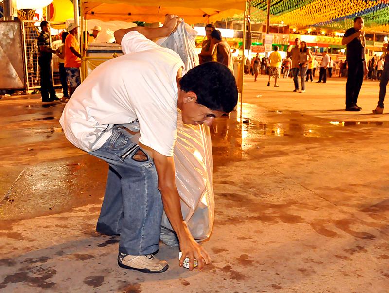 Desde o início do evento, José Vieira filho, 47, está trabalhando no recolhimento das latas recicláveis. O catador ainda vai trabalhar até o dia 29, quando se encerra o Forró Caju. "A festa está muito boa. Nesses dois dias já consegui juntar setenta quilos e a expectativa é de que consiga juntar muito mais, por isso todos os anos eu venho", revela.