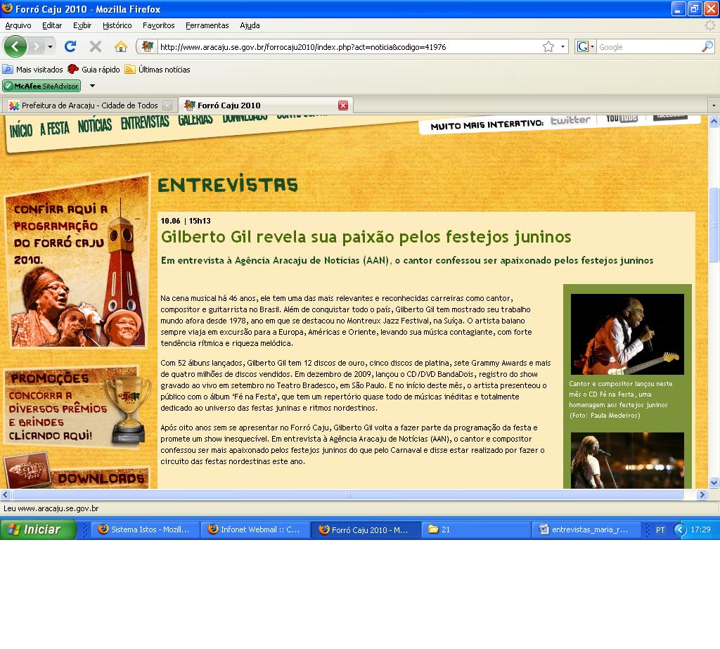 Prestigiando artistas locais e nacionais, a Agência Aracaju de Notícias (AAN) abordou assuntos variados, como a relação de Gilberto Gil e da banda Calypso com as novas redes sociais. "Elas são, realmente, a forma de comunicação mais próxima do público. Agora é assim: temos que estar ligados em todos os canais de comunicação", disse Gil.