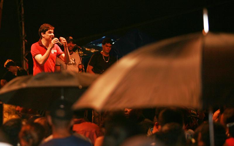 "Infelizmente, temos que fazer música comercial, por mim só cantaria Gonzaga, mas dependemos disso, e o público pede ‘Sorte' [de Forró do Muído], ‘E daí? [da dupla sertaneja Guilherme e Santiago]', e nós tocamos, claro!", desabafa o vocalista.