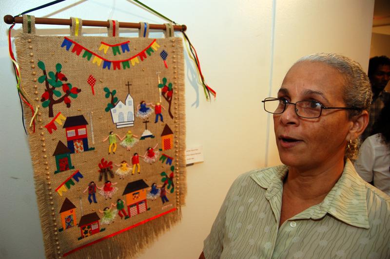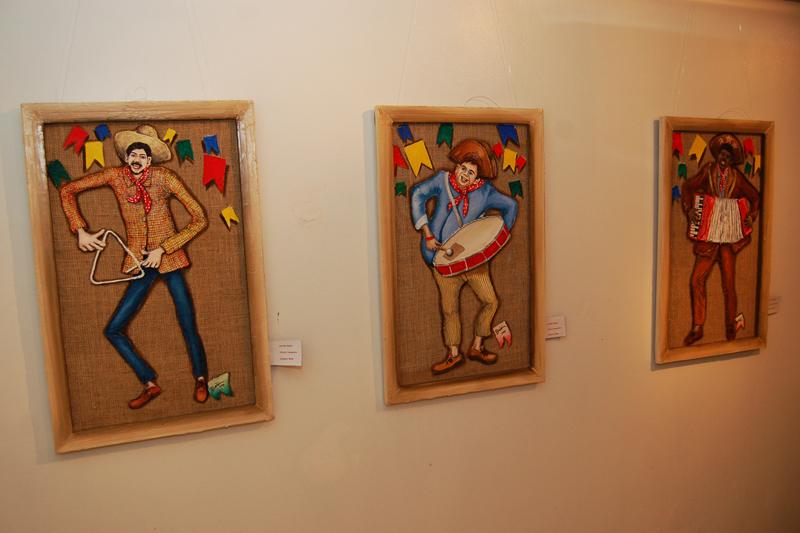 A artista Tânia de Aguiar, que expõe dois estandartes feitos com várias técnicas, conta que a riqueza dos trabalhos vem da amplitude do tema. "Nas minhas peças fiz referências a várias manifestações do nosso folclore, como a quadrilha e o casamento matuto,  o trio pé-de-serra e até mesmo o barco de fogo. O período junino nos dá margem para explorar muita coisa", avalia.
