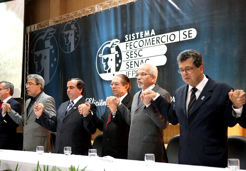 Um grande evento no Centro de Convenções de Sergipe marcou a noite dessa segunda-feira, dia 12: a posse da nova diretoria da Federação do Comércio de Bens, Serviços e Turismo do Estado de Sergipe (Fecomércio). O empresário Hugo França entregou a presidência da entidade a Abel Gomes da Rocha Filho, que terá como 1º vice-presidente o empresário Marcelo Oliveira. A solenidade contou com a presença do prefeito Edvaldo Nogueira.