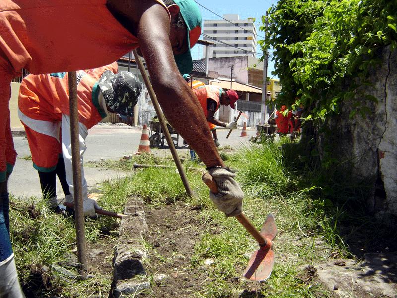 Varrição, capinação, recolhimento de lixo, pintura de meio fio, roçagem, gadanhamento e coleta de resíduos são os serviços realizados no mutirão de limpeza da Prefeitura de Aracaju. Esta semana, os trabalhos acontecem no bairro 18 do Forte, com a participação de 156 agentes de limpeza da Empresa Municipal de Serviços Urbanos (Emsurb).