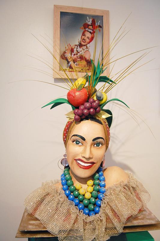 A jornalista e psicopedagoga Maria Angélica de Oliveira foi à abertura da exposição vestida como baiana para honrar a imagem construída por Carmen Miranda. “Carmen fez questão de tornar a baiana conhecida e por isso vim vestida da dessa forma. Em um período de negação da negritude, ela se espelha na figura afrobrasileira e traduz a nossa cultura paro o exterior, inclusive vestindo nossos produtos naturais”, explica a professora. “Entre os anos 30 e 50 ela vendeu o nome do Brasil em todo o mundo, mas ainda hoje é referência cultural, tanto que meus alunos de antropologia a estudam em minhas aulas”, conta.