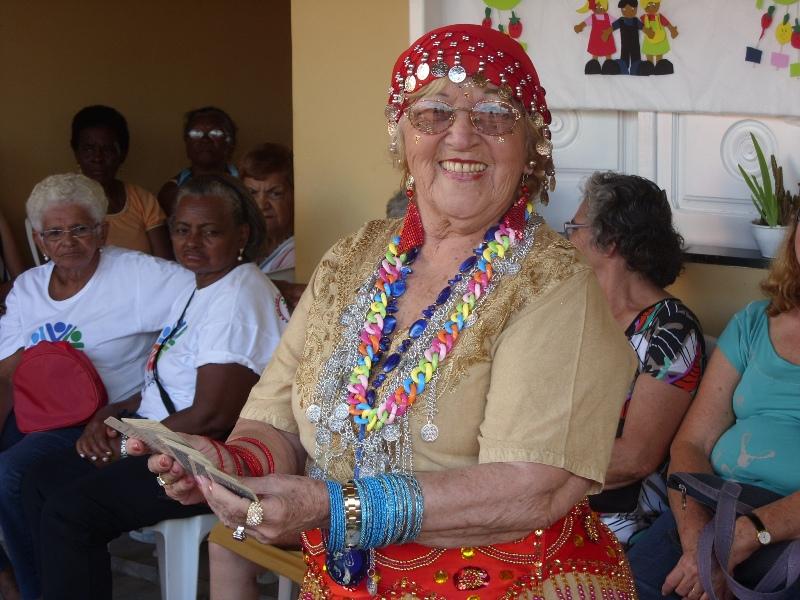 Dona Valdira Figueiredo Mesquita, 76, não escondeu a felicidade e contou que participa de várias atividades no Cras. Além disso, a cada encontro comemorativo ela incorpora uma personagem diferente para deixar o lugar mais alegre. "Esse é o dia mais especial da minha vida, pois é sempre bom estar com as amigas. Participo de muitos eventos do Cras e me transformo em cigana, freira, índia, enfermeira, tudo isso para ver o sorriso das minhas parceiras", disse.