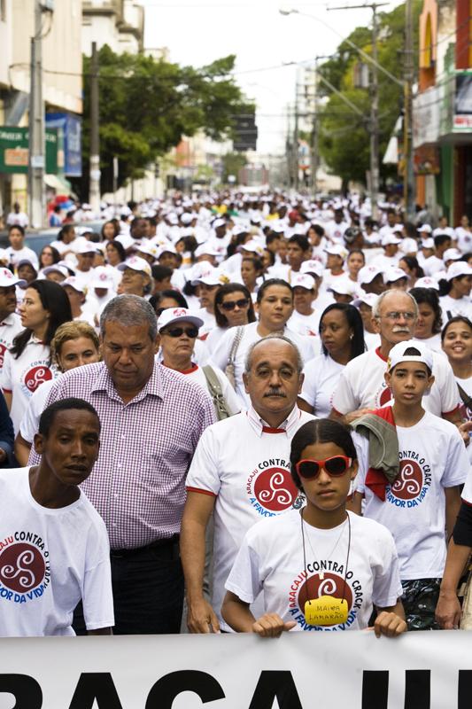 A população aracajuana se mobilizou na tarde desta sexta, 6, para a Caminhada contra o Crack realizada pela Prefeitura Municipal de Aracaju (PMA). O prefeito Edvaldo Nogueira fez questão de participar do evento e levar sua mensagem de união e solidariedade para reforçar a luta contra as drogas. Segundo estimativa da polícia, cerca de 10 mil pessoas participaram do início da caminhada, que saiu da Praça da Bandeira em direção a Fausto Cardoso.