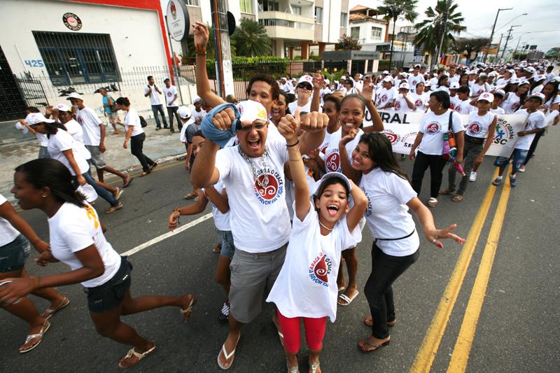 A grande representação de solidariedade foi a participação dos integrantes dos Centros de Referência de Assistência Social (Cras). Os coordenadores e monitores foram acompanhados de jovens, mães e avós que abraçaram a causa. Integrante do grupo Pastoral dos Idosos, Arineide Bento, 57, participou da caminhada para ajudar a conscientizar a juventude.