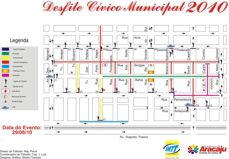 Para comemorar o aniversário de 188 anos de Independência do Brasil, a Prefeitura de Aracaju vai realizar neste domingo, 29, a partir das 8 horas, o Desfile Cívico Estudantil da Rede Municipal de Ensino. Para garantir a segurança do público que vai prestigiar o evento, a Superintendência Municipal de Transportes e Trânsito (SMTT) montou uma operação especial, envolvendo mais de 50 agentes, 10 motos e cinco viaturas.