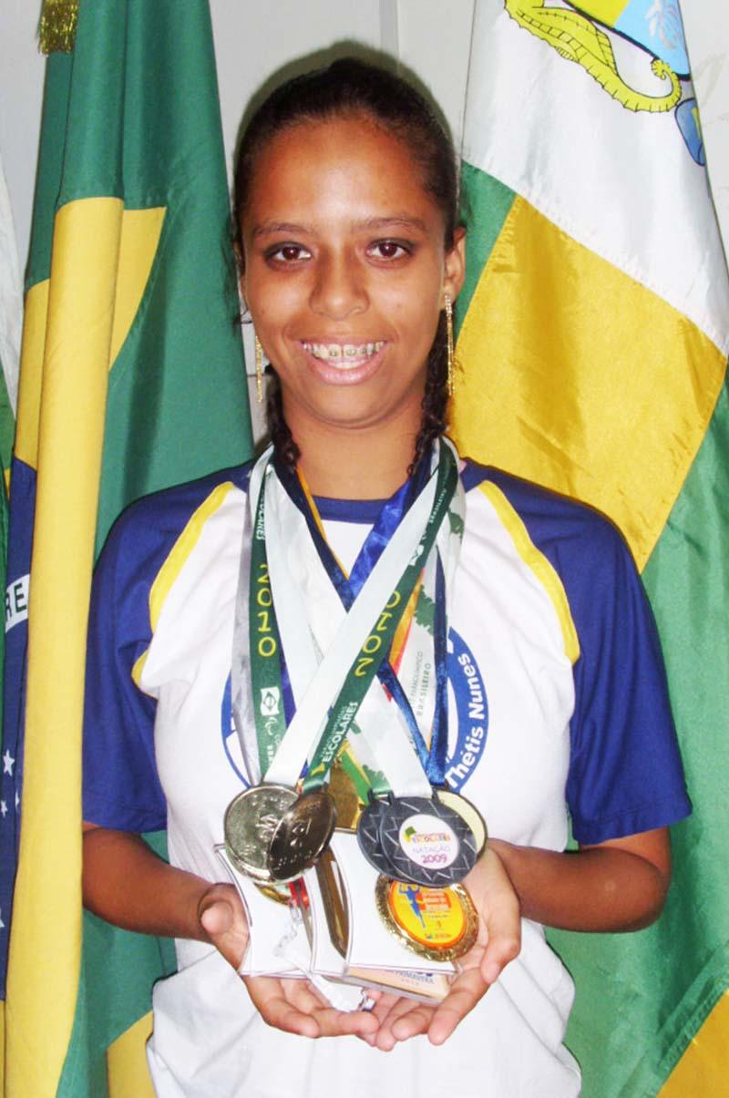 No último fim de semana, a aluna da Escola Municipal de Ensino Fundamental (Emef) Maria Thétis Nunes Nívia Maria Santos, retornou da cidade de São Paulo, onde representou o estado de Sergipe nas Paraolimpíadas Escolares 2010. Deficiente mental, a estudante conquistou duas medalhas de prata na natação e não hesitou em uni-las à coleção de méritos já alcançados nessa modalidade e no atletismo.