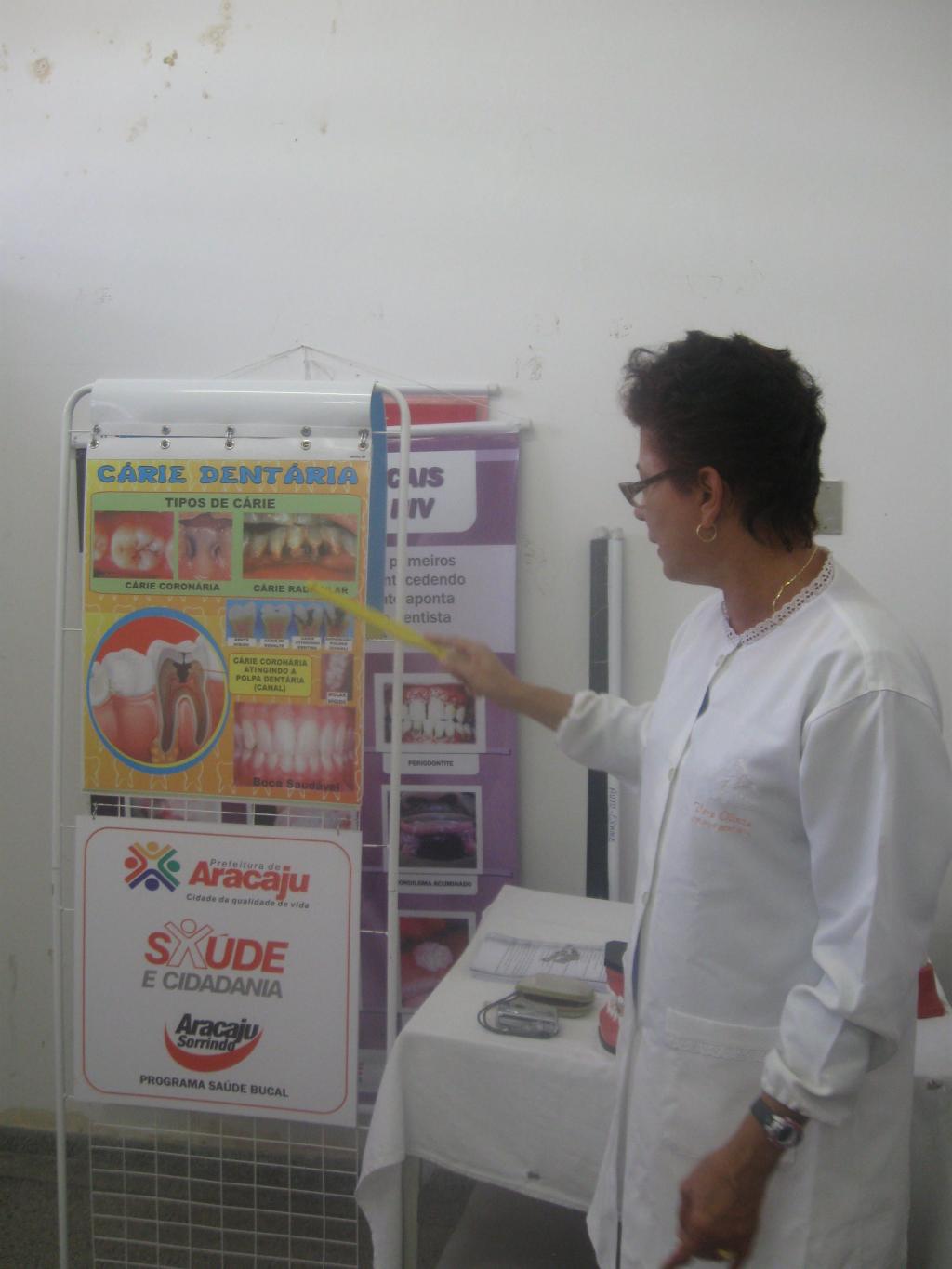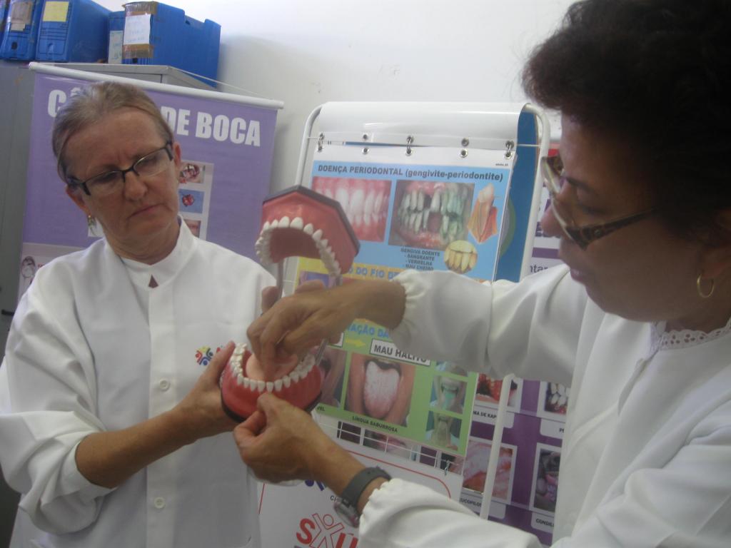 Com o apoio de material educativo, as profissionais falaram sobre a importância da higiene bucal e ensinaram técnicas de escovação dos dentes e de próteses. "Dentes sadios contribuem para a qualidade de vida", reforçou Vera Olinta.