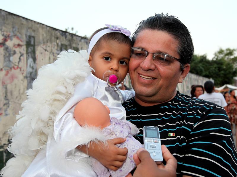 Quem também foi pagar promessa foi a neta de Pedro Rocha, que tem dois anos. De acordo com ele, por promessa ela terá de acompanhar a procissão até completar 15 anos de idade.