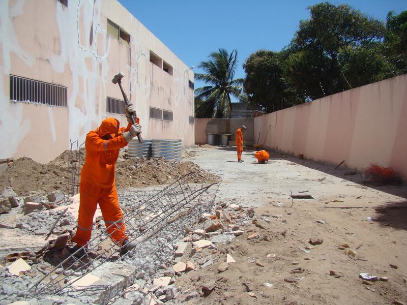 Ele acrescenta que atualmente 10 profissionais se dividem na execução final dos serviços no residencial Cristal do Sul. "Como o canal natural passa por baixo do condomínio, foi necessário quebrar o piso para realizar o serviço. Enquanto alguns trabalhadores estão terminando o reboco e fazendo os retoques nos muros, outros fazem o recolhimento de entulhos e os acabamentos nas caixas coletoras", explica José Alberto.