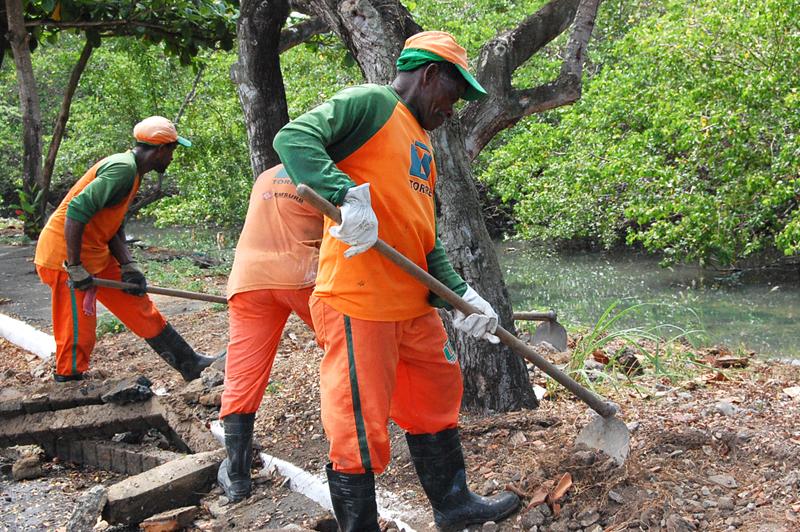 O serviço de limpeza no mangue é realizado de acordo com a maré e com as solicitações, que podem ser feitas através do telefone 0800 284 1300 (Central de Atendimento ao Cidadão).