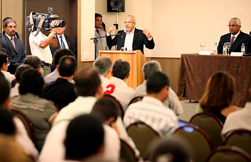 Na manhã desta quarta-feira, 17, o ministro da Saúde, José Gomes Temporão, lançou em Aracaju a nova campanha nacional de combate à dengue. Foram apresentadas para prefeitos, secretários de Saúde e gestores municipais e estaduais das áreas de Infraestrutura, Educação, Meio-Ambiente e Defesa Civil as ações que serão implementadas até outubro de 2011 em todo o país. Durante o encontro, realizado no auditório do Hotel Mercure, Edvaldo Nogueira entregou ao ministro um relatório completo sobre a situação da dengue na capital sergipana.