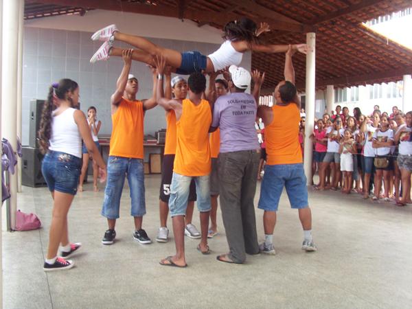 Mesmo de equipes diferentes, as adolescentes Vitória Araújo, 14 anos, e Naira Aline Lima, 13 anos, se uniram para criação de uma apresentação de dança artística. Sob o frisson dos alunos que as prestigiaram, elas se mostraram muito alegres e satisfeitas com o resultado da simulação de um musical americano do filme High School Musical.