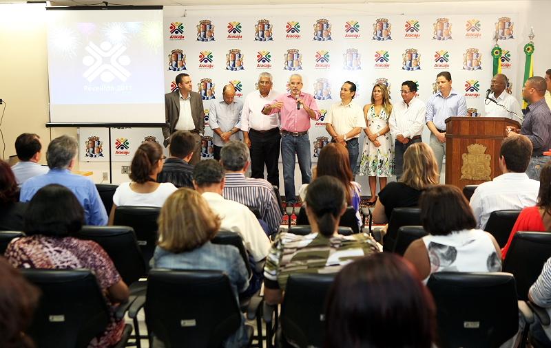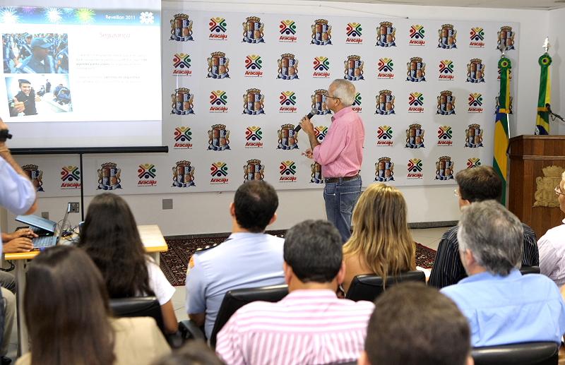 "Montamos uma mega operação para um evento de grandes proporções que deve reunir cerca de 300 mil pessoas ao longo da Orla de Atalaia", afirmou o prefeito Edvaldo Nogueira durante a entrevista coletiva realizada na manhã desta terça-feira, 28. A solenidade, realizada no auditório do Centro Administrativo Prefeito Aloísio Campos, foi para divulgar as novidades no esquema de trânsito e toda a estrutura montada pela Prefeitura Municipal de Aracaju (PMA) para o Réveillon 2011, que acontece na Orla de Atalaia.