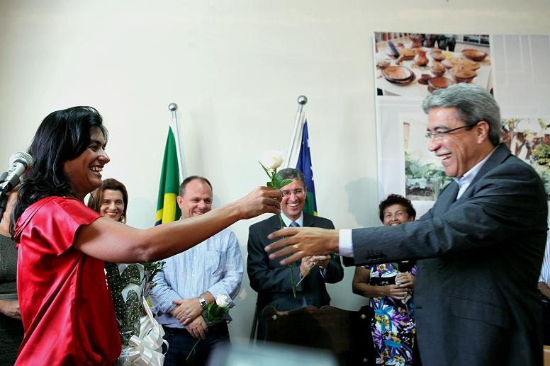 Ao fim de seu pronunciamento, a secretária entregou uma rosa branca ao secretariado estadual presente à solenidade, autoridades e líderes comunitários que têm suas ações diretamente ligadas a Seides, à secretária municipal de Assistência Social e Cidadania, Rosária Rabelo, ao prefeito Edvaldo Nogueira e ao governador Marcelo Déda.