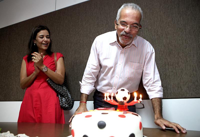 O governador de Sergipe, Marcelo Déda, fez uma visita de cortesia ao prefeito de Aracaju, Edvaldo Nogueira, na manhã desta terça-feira, 25, para cumprimentá-lo pelo seu aniversário. O prefeito, que faz 50 anos, ganhou uma gravata de presente. O governador brincou: "Agora, nós dois juntos temos 100 anos!" O presente é uma gravata em tom cinza com bolinhas rosas. Depois, Edvaldo recebeu uma homenagem dos secretários, principais assessores e da primeira-dama, Danusa Silva.