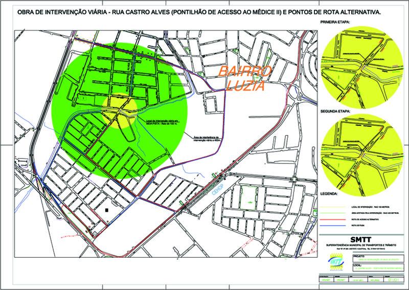 A partir desta sexta-feira, 11, a rua Castro Alves, no bairro Luzia, que dá acesso ao conjunto residencial Médici II, terá trânsito em meia pista das 6h às 23h. O motivo é a realização de serviços de conclusão da rede de esgotamento sanitário do bairro Ponto Novo.