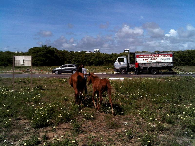 Para recolher os animais, foram encaminhados ao local dois caminhões boiadeiros. "Infelizmente não localizamos esses animais. No entanto, registramos, na rua José Freitas de Andrade, bem próximo ao local da denúncia, uma égua e outros animais que estavam amarrados em um terreno que margeia o mangue, causando transtornos à vizinhança com mau-cheio e aparecimento de parasitas", registrou Antônio Pereira.