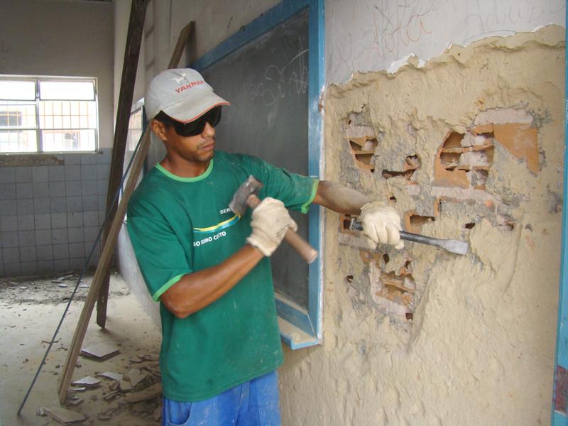 A obra está em fase inicial. Oito operários trabalham de segunda a sábado na execução dos serviços. Esta semana, as equipes realizam a retirada das cerâmicas das paredes das salas e a substituição do revestimento por um tipo mais resistente. Algumas salas já estão recebendo novo acabamento.