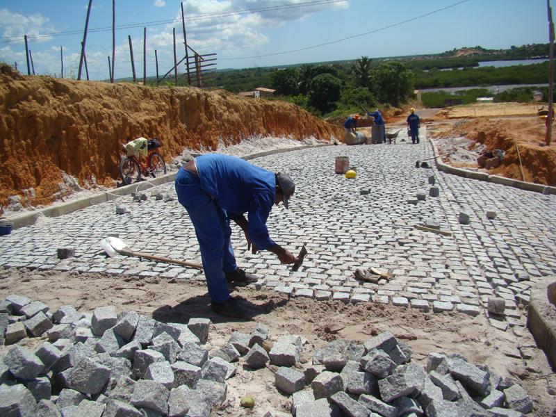 A equipe concentra os trabalhos na colocação das pedras de paralelepípedo em algumas vias do bairro e na conclusão das muretas de contenção, que garantirão a segurança e estabilidade das residências após a pavimentação das ruas. A edificação vai reforçar a estrutura das casas, pois como se trata de uma área de declive, e os muros vão sustentar o terreno, coibindo o risco de desabamentos.