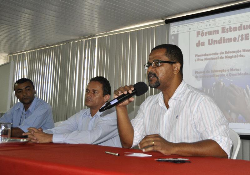 Os secretários municipais da Educação dos 75 municípios sergipanos participaram, esta manhã, 25, do Fórum Estadual da União Nacional dos Dirigentes Municipais da Educação (Undime /SE). O evento aconteceu no auditório do Centro de Aperfeiçoamento de Recursos Humanos (Cemarh), localizado no bairro Siqueira Campos. Durante o encontro, o secretário municipal da Educação, Antônio Bittencourt Júnior, foi eleito presidente da Undime/SE.