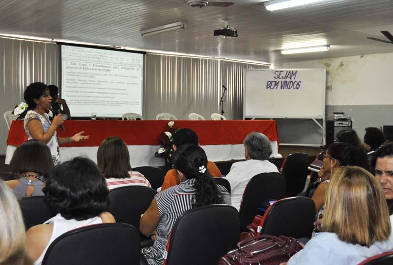 Saudando os secretários municipais da Educação, Tereza Cristina Cerqueira da Graça iniciou sua palestra evidenciando a importância dos planos municipais de Educação, da base legal e procedimentos para deflagração do processo de elaboração dos mesmos, entre outros aspectos. "Trata-se de um instrumento norteador das políticas para as diferentes e sucessivas gestões, de acompanhamento e fiscalização dos segmentos, da sociedade. Dessa forma, deve conter metas de médio e longo prazo baseadas nas características, vocações e desafios da cidade", explicou a professora mestre.