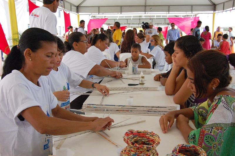 A Oficina de Papel mostrou a todos como é possível transformar papel em obras de arte como enfeites, chapéus, murais, lixeiras, bandejas para escritório, cadeiras, baús e porta-canetas. Quatro monitoras do projeto ensinaram aos moradores como produzir cada detalhe. O jovem Leniton Rian disse que saiu satisfeito com o aprendizado. "Elas me ensinaram tudo direitinho. O que elas pediam eu fazia. Consegui fazer uma cestinha pra levar de presente pra minha mãe. É só enrolar o papel e passar um por um. Depois vai colando tudo", explica.