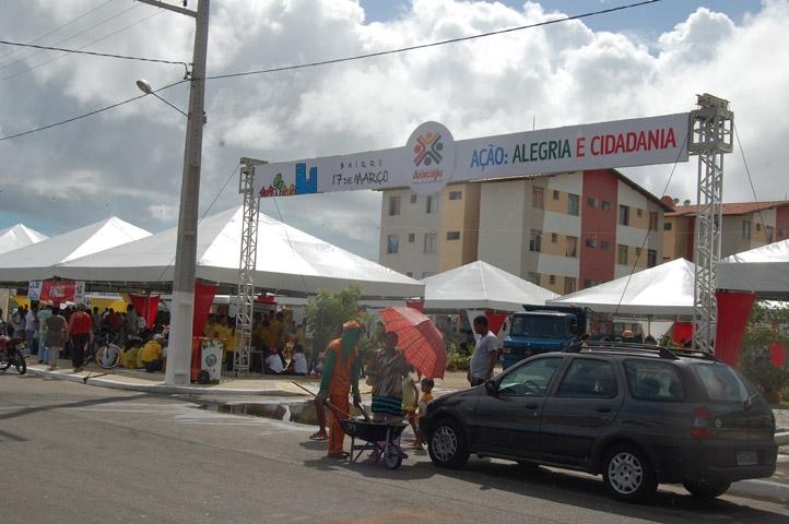 Depois de levar as comemorações aos 156 anos da cidade a diversos pontos da capital, a Prefeitura Municipal de Aracaju (PMA) marcou presença sábado, 26, no bairro 17 de Março. Uma grande festa foi realizada no local com a prestação de serviços e muitas atrações culturais e esportivas, através do 'Arte em Toda Parte'. O projeto, desenvolvido pela Fundação Municipal de Cultura, Turismo e Esporte (Funcaju), ofereceu aos moradores uma gama de atividades de cunho musical, teatral e recreativo.