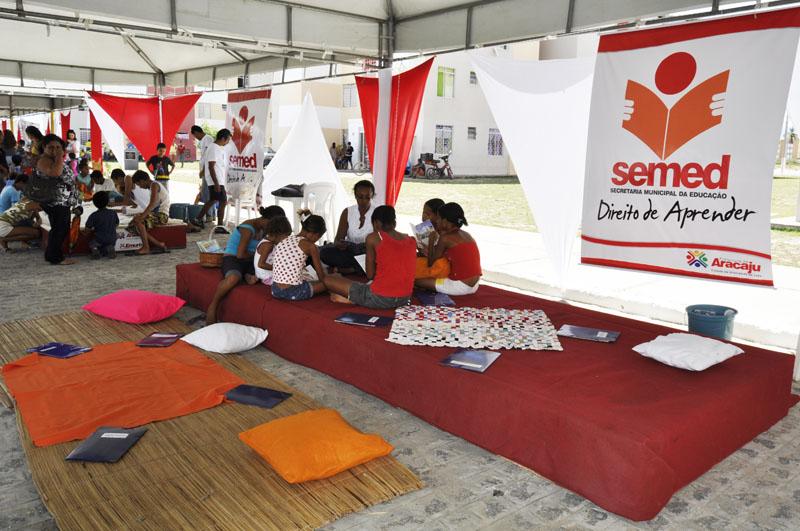 Na tenda da leitura ‘Ler e Viver', coordenada pela educadora e facilitadora do Centro de Aperfeiçoamento de Recursos Humanos (Cemarh) Telma Santos, as crianças do bairro 17 de março tiveram acesso a diversas obras literárias e puderam praticar a leitura de poesias, contos, lendas, poemas e fábulas. "Todas as histórias contadas permeiam temáticas relacionadas ao cotidiano das crianças, a exemplo de ‘Pêra, seu doutor!', de Jorge Hermanan, que trata da preservação ambiental. É importante oferecer às crianças um acervo diverso, contato com o livro e narração da história para despertar o prazer pela leitura", explicou.
