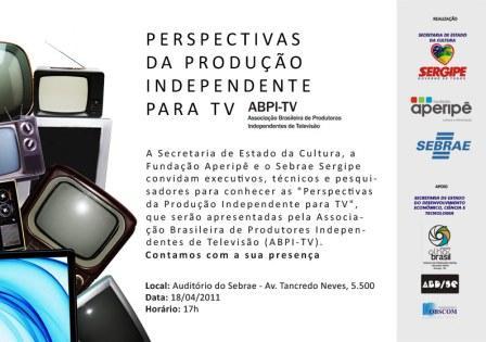 Dando sequência às ações de estímulo à produção audiovisual em Sergipe, na próxima segunda-feira, 18, a Associação Brasileira de Produtores Independentes de Televisão (ABPI-TV) realizará palestra e debate com o tema ‘Perspectivas da Produção Independente para a TV'.