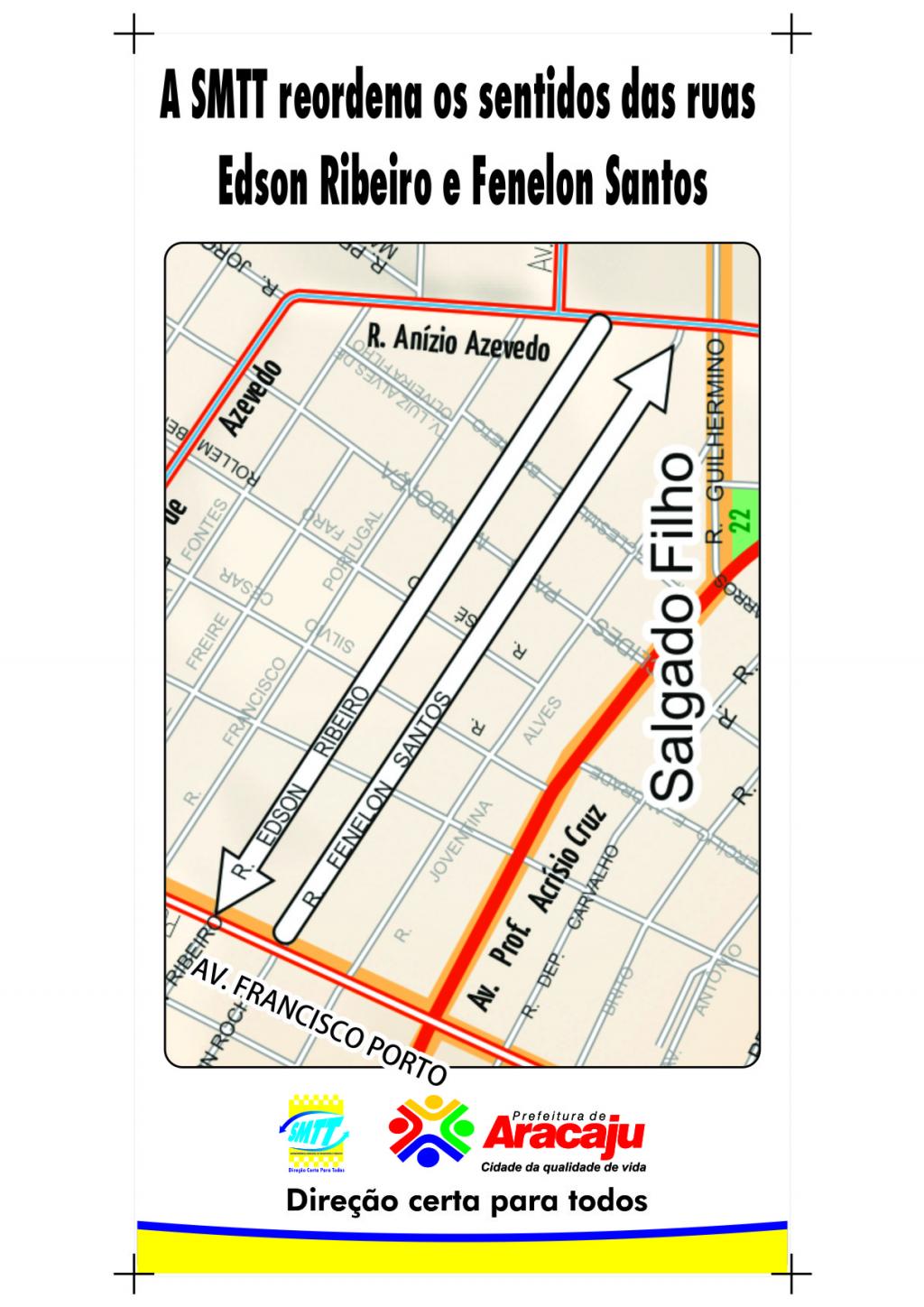 A partir desta segunda-feira, 18, as ruas Edson Ribeiro e Fenelon Santos, localizadas no bairro Salgado Filho, não serão mais vias de mão-dupla. A Edson Ribeiro, que passará a ser de mão única, segue em direção à avenida Francisco Porto, enquanto a rua Fenelon Santos terá sentido única em direção à avenida Anízio Azevedo.