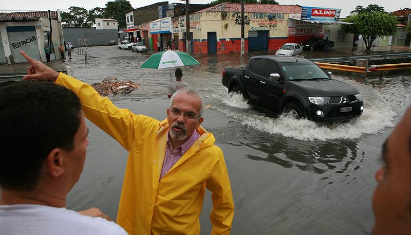 Após se reunir com o secretariado municipal no final da manhã desta terça-feira, 24, o prefeito Edvaldo Nogueira foi 'in loco' verificar os estragos causados pelas fortes chuvas em vários pontos da capital sergipana. Enquanto equipes da Emsurb, Emurb, Defesa Civil, Guarda Municipal, SMTT, secretarias de Assistência Social, Educação, Governo, Saúde, Planejamento, Gabinete e Comunicação atendiam a população, Edvaldo esteve nos principais pontos de alagamento.
