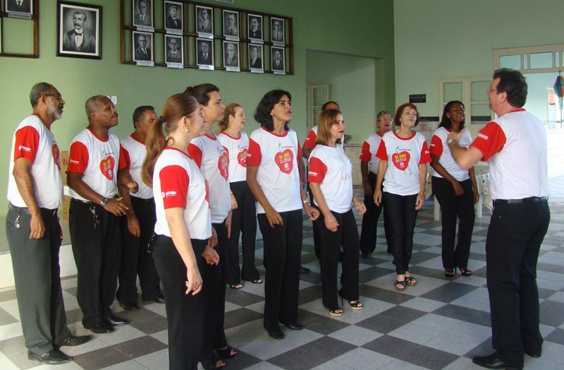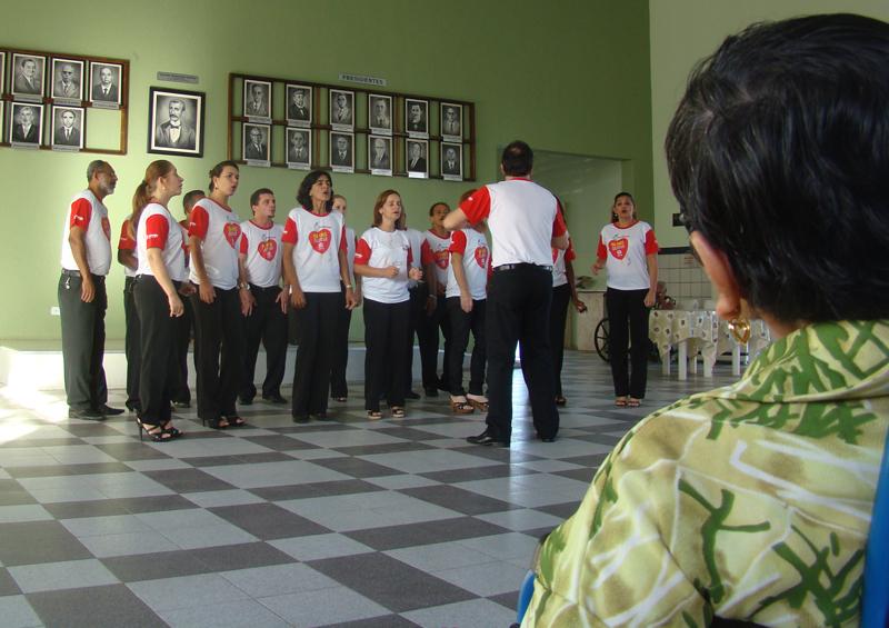 Na tarde da última segunda-feira, 30, o coral da Empresa Municipal de Obras e Urbanização (Emurb) animou o evento que marcou a doação de uma televisão de 52 polegadas aos idosos amparados pelo Asilo Rio Branco. A entrega foi fruto de um sorteio promovido pelos membros do coral, com o objetivo de angariar fundos para ajudar no custeio das viagens e apresentações do grupo.