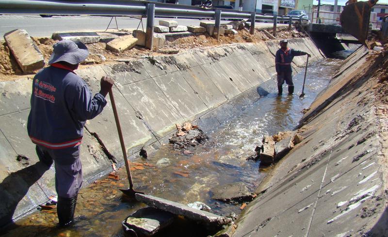 Esta semana, equipes da Emurb iniciaram a recuperação da estrutura do local. Sete profissionais fazem a limpeza do canal com o auxílio de máquinas. Os profissionais fazem a retirada de todo o material que desmoronou com as águas. Além disso, estão sendo feitas a reconstrução das muretas e a substituição de parte do calçamento. A última etapa será a pintura da estrutura.