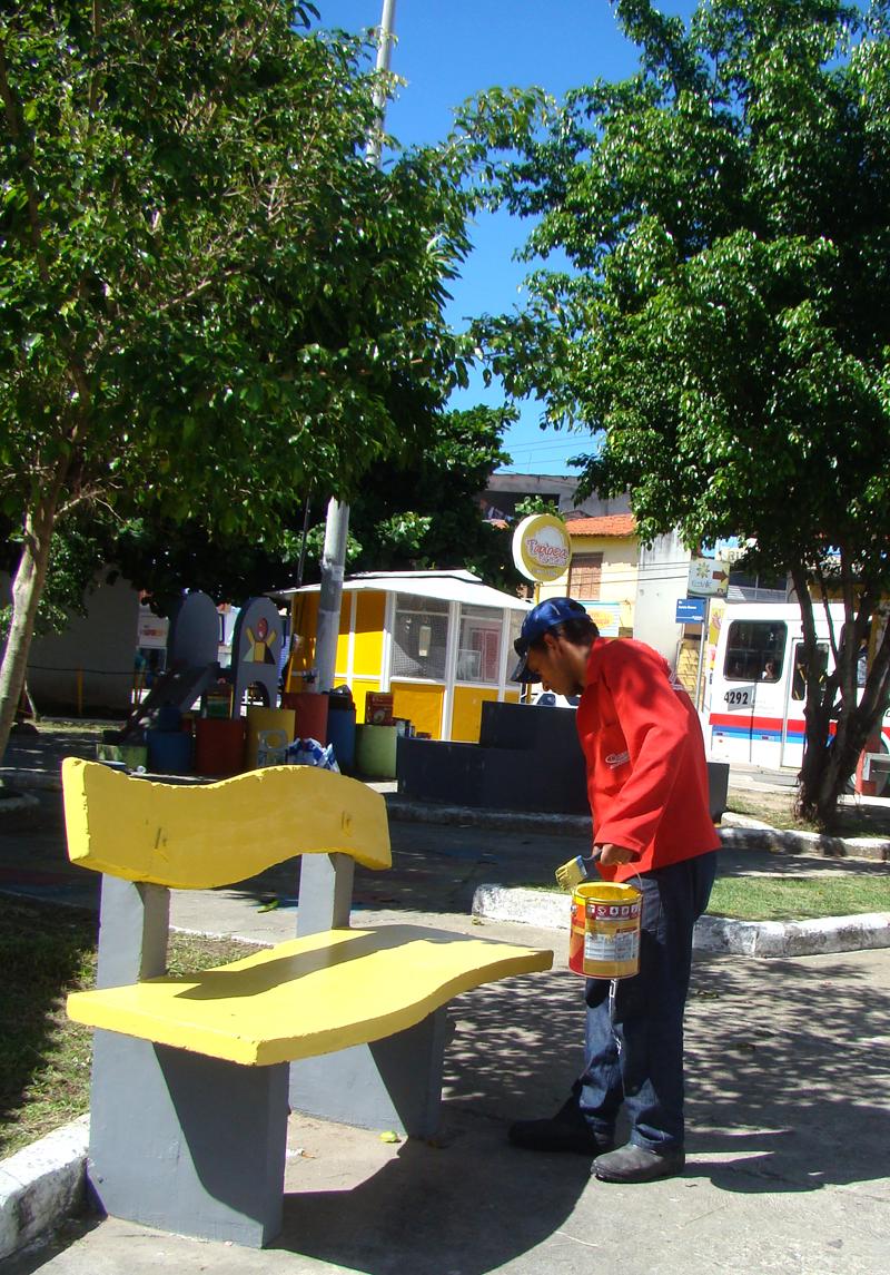 A Prefeitura de Aracaju, por meio da Empresa Municipal de Obras e Urbanização (Emurb), está realizou esta semana serviços de pintura e recuperação de bancos no Largo Fernando Santos, no conjunto Castelo Branco, bairro Ponto Novo. O objetivo é garantir a conservação do patrimônio público, preservando o mobiliário urbano da praça.