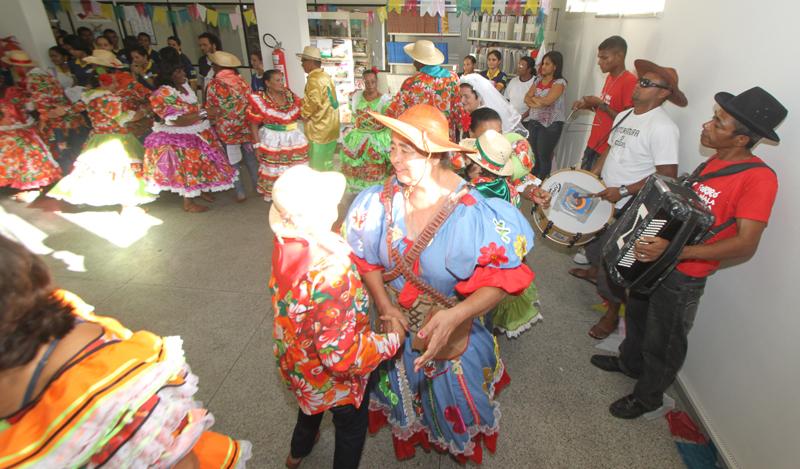 Já é São João na Biblioteca Municipal Clodomir Silva. Quebrando a rotina de silêncio, a quadrilha junina do grupo Nova Vida abriu a programação especial da instituição para este mês na tarde da última quinta-feira, 9. O grupo, mantido pelo Sesc, é formado por idosos do Bairro Siqueira Campos. Apesar da idade, a turma mostrou fôlego de dar inveja.