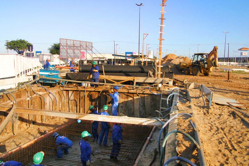 O viaduto do Distrito Industrial de Aracaju (DIA), importante obra da Administração Municipal, teve iniciadas suas obras de concretagem da parte estrutural, há cerca de um mês e meio, e já se encontram avançadas suas etapas de sustentação. O novo viaduto terá 38 blocos e 76 pilares, sendo cada bloco com dois pilares. Como exemplo de tecnologia e investimento por parte do Poder Público, o viaduto terá sua parte de baixo toda urbanizada e iluminada. Com 380 metros de extensão em sua parte principal e quatro alças de acesso (que fazem as ligações com a parte principal), depois de concluída a obra, irá desafogar o intenso tráfego de veículos e organizar o trânsito entre as principais avenidas Adélia Franco e Heráclito Rollemberg, que ligam a cidade de norte a sul, e leste-oeste. Com sua etapa de concretagem de bloco e pilares avançadas, tendo mais três blocos para sustentação dos pilares para serem entregues em dez dias, das 304 estacas necessárias para erguer os pilares de sustentação do viaduto, já foram executadas até o momento 280, o que representa o bom andamento da obra. De acordo com o engenheiro responsável pela obra, José Henrique Rodrigues, a Companhia de Saneamento Básico de Sergipe (Deso) e a Sergás já estão providenciando o remanejamento, já estando disponível todo o material para rede, no canteiro da obra. Essa obra é de extrema importância para o desenvolvimento e urbanização da cidade. O local que hoje representa um ponto crítico, de intenso fluxo, daqui há cinco, dez anos veremos os resultados dessa obra, que facilitará a vida de todos: motoristas, pedestres e ciclistas, enfatiza.