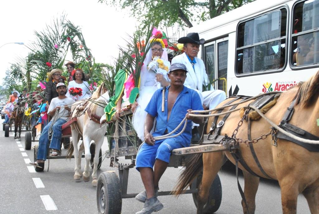 O cortejo caipira, composto de 35 carroças, criativamente adornadas com os motivos juninos, deixou o forródromo da rua de São João às 14h30, seguindo pelo centro comercial de Aracaju até o clube Cotinguiba. Durante todo percurso, os idosos foram saudados pelo público, que acenava e aplaudia. "Nós nos sentimos mais vivos. É como se nestas festas virássemos crianças", declarou Maria Luíza Marques da Silva, 65 anos, a ‘noiva' do Cras Gonçalo Rollemberg.