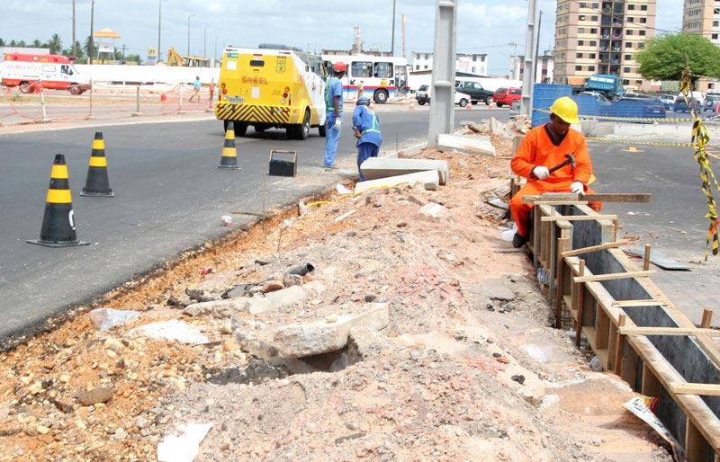 O trabalho na obra do viaduto do DIA não pára. Mesmo com uma semana de chuvas, os operários finalizaram o remanejamento da tubulação de gás, além da rede adutora de água da Deso, ambas modificados para garantir a segurança e bem-estar aos moradores da área. De acordo com o engenheiro fiscal da Empresa Municipal de Obras e Urbanização (Emurb), José Henrique Rodrigues, a rede de energia está no seu devido local. Os postes já foram recuados para que as novas pistas de acesso sejam concluídas, afirma o engenheiro fiscal. Ele acrescenta ainda que no momento resta apenas a conclusão das interligações da rede de água e gás. No que diz respeito à nova tubulação de gás, está sendo preparado um relatório de análise de risco, que deverá ser entregue a Administração Estadual do Meio Ambiente (Adema), comenta José Henrique. Ainda segundo ele, a distribuição de água depende da Deso. Ela fará a programação do desligamento do abastecimento, que será divulgado na imprensa sergipana para que os moradores não sejam surpreendido com a falta de água decorrente da nova rede, explica o engenheiro. Também estão em andamento a execução de um bloco de encontro da alça que ficará ao lado do terreno da Igreja e dois pilares ao lado do terreno da Codise. Apesar das chuvas, a obra continua avançando em novas fases. Estamos cumprindo o cronograma, enfatiza José Henrique.