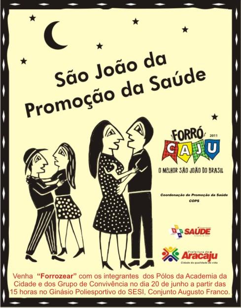 A Secretaria Municipal da Saúde (SMS), através do Programa Academia da Cidade, realizará hoje, 20, às 14h30, o 1º São João da Promoção da Saúde. A festa será no Ginásio Poliesportivo do Sesi, localizado na avenida Canal 3, no Conjunto Augusto Franco.
