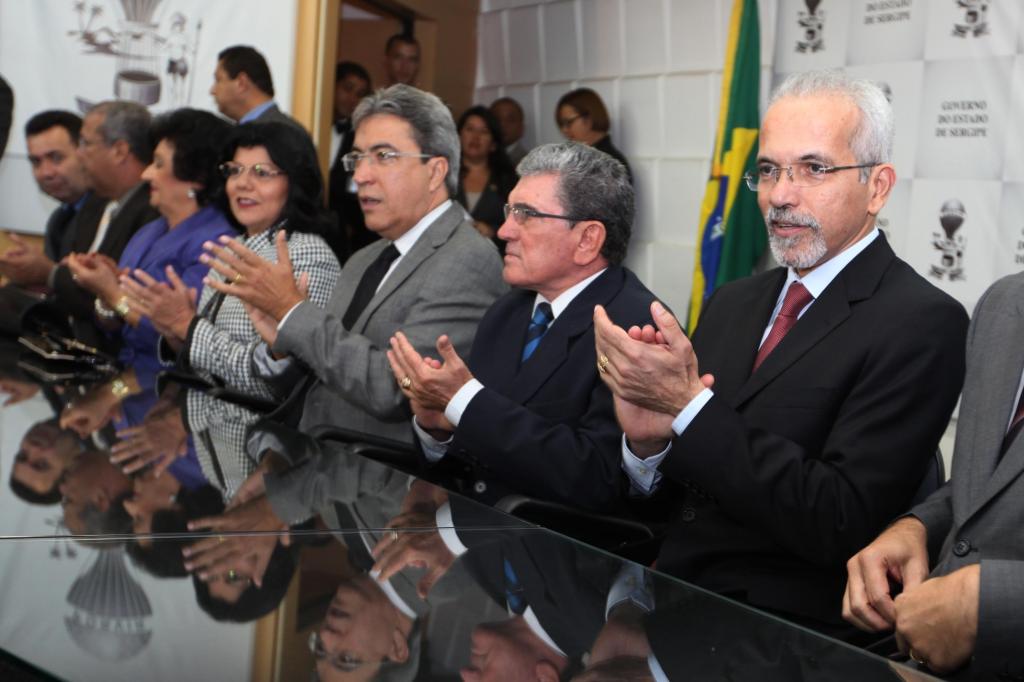 O prefeito Edvaldo Nogueira participou na manhã desta quarta-feira, 28, da solenidade de transmissão do cargo de governador do Estado de Marcelo Déda para a presidente da Assembleia Legislativa de Sergipe, Angélica Guimarães. Ela assume o Poder Executivo pelos próximos 10 dias, período em que Déda estará afastado para resolver assuntos pessoais e participar de um encontro com representantes da Petrobras e da Companhia Vale.