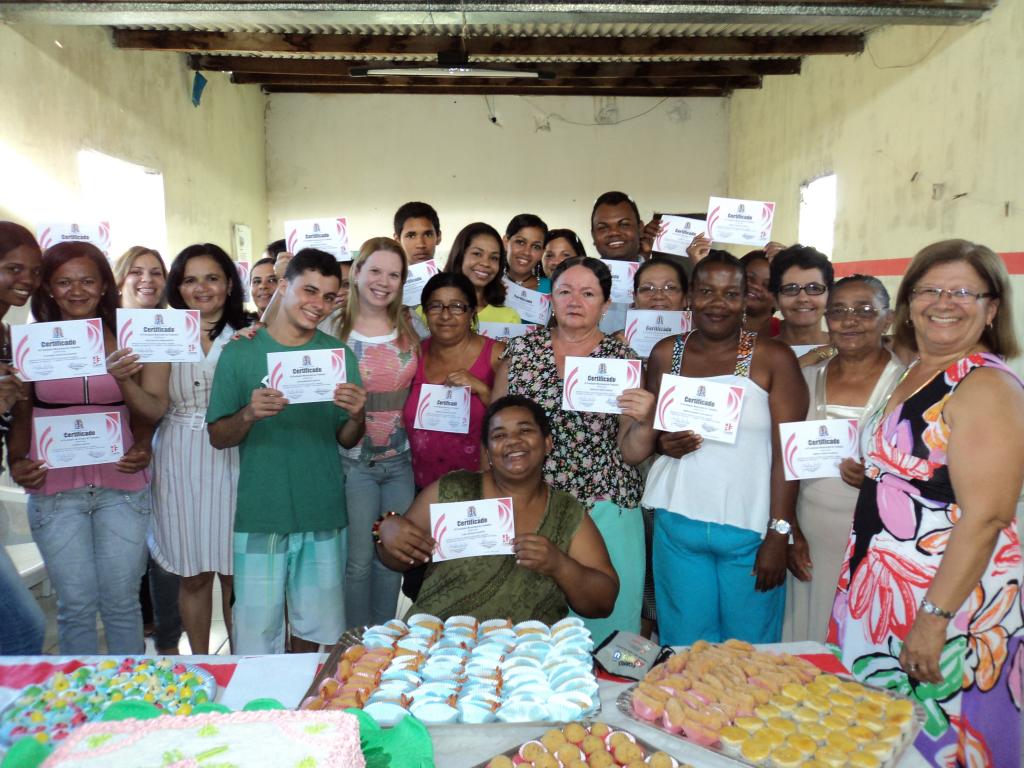 O clima foi de festa na Unidade de Qualificação Profissional do Jardim Centenário, núcleo de aprendizado da Prefeitura de Aracaju, administrado pela Fundação Municipal do Trabalho (Fundat). Nesta quinta-feira, 18, 30 homens e mulheres comemoraram o recebimento dos certificados de conclusão do curso de doces e salgados. O curso profissionalizante oportunizou a geração de renda para muitos alunos. O treinamento foi de 70 horas/aula, sendo dez de relações interpessoais. Em todos os cursos ofertados pela fundação, além das aulas práticas, os participantes recebem informações sobre o autoconhecimento, relações interpessoais, diferenças individuais, ética profissional, integração com o grupo, entre outros assuntos que contribuem para a elevação da autoestima dos participantes e a preparação para o mercado de trabalho. A agente de saúde Ilná Carvalho Santos faz parte da diretoria da Associação Luz do Oriente, no bairro Industrial. Ela frequentou o curso para aprender a confeccionar doces e salgados e repassar os novos conhecimentos para um grupo de idosas. "Os cursos da Fundat melhoram até a saúde dos participantes. Não há espaço para depressão. Só temos que agradecer a oportunidade que nos foi dada. Hoje, estamos preparados para confeccionar os produtos e melhorar a nossa renda", afirma. A coordenadora da Unidade de Qualificação Jardim Centenário, Jailda dos Santos Prado, destacou que, diante dos inúmeros alunos que frequentaram aquela unidade, é gratificante estar participando desse projeto. "Muitas pessoas são beneficiadas e, como ser humano, a gente tem satisfação em dar a nossa parcela de contribuição". A coordenadora do Programa de Qualificação da Fundat, Camila Dantas, parabenizou a turma, lembrando que a frequência foi de 100%. "Acredito que a fundação está no caminho certo, qualificando e inserindo o cidadão no mercado de trabalho", disse.