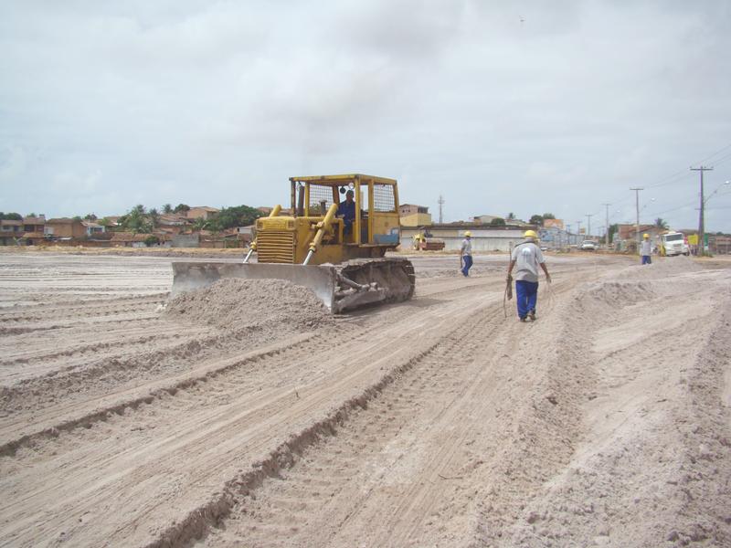 Os profissionais atuam em três frentes de trabalho. Uma equipe finaliza a limpeza do solo e a retirada do entulho. Já outro grupo nivela o terreno através do serviço de terraplenagem. E a terceira equipe implanta cercas em toda extensão da área a ser construída. Após a conclusão dessas etapas, serão iniciados os serviços de drenagem, pavimentação e construção das moradias.