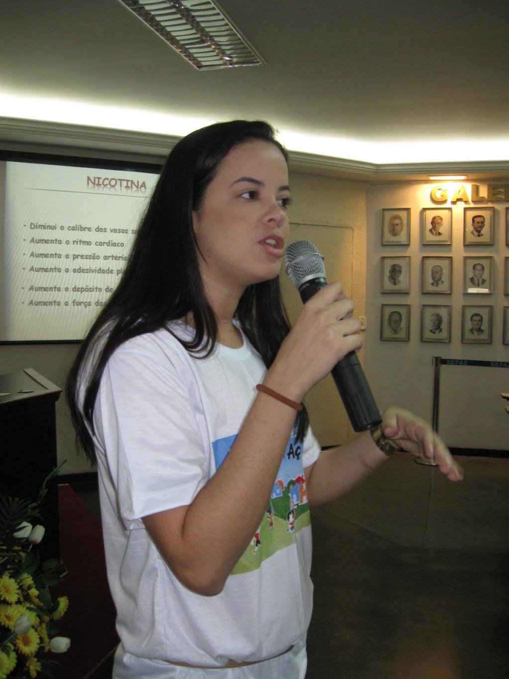 Além disso, durante a palestra, Clarissa também descreveu as substâncias tóxicas que o cigarro contém, como formol, naftalina, acetona e nicotina. "A nicotina, por exemplo, é uma droga que atua no sistema nervoso central, chega ao cérebro em apenas sete segundos e causa dependência", disse.