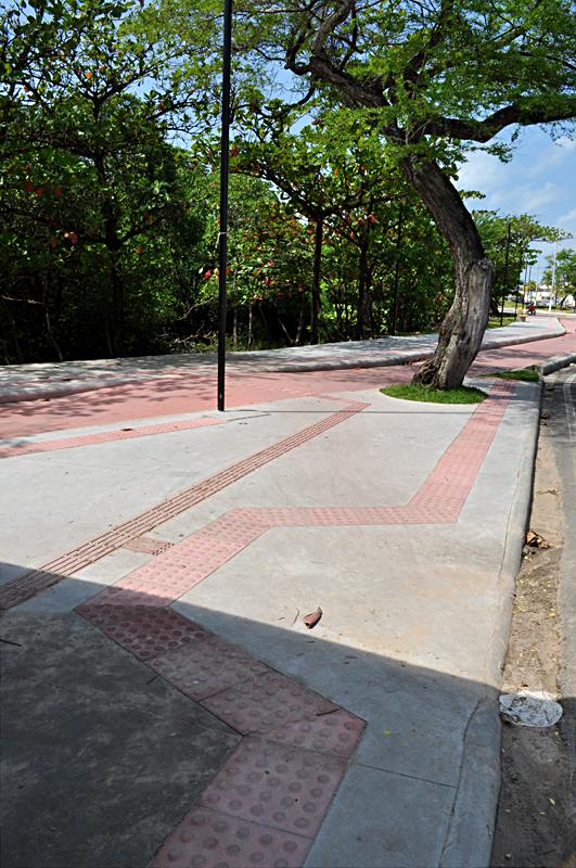 O projeto de reurbanização do calçadão da Beira Mar tem sido executado dentro dos parâmetros da legislação que normatiza as calçadas de toda a cidade. A obra, realizada pela Prefeitura de Aracaju, por meio da Empresa Municipal de Obras e Urbanização (Emurb), atende ao que preconiza o Projeto Calçada Livre. Em vigor desde 2007, a cartilha é uma síntese de normas que regulamentam a mobilidade e a locomoção em espaços públicos de toda a capital. Com um investimento na ordem de R$ 4,2 milhões em recursos próprios, a reurbanização dos mais de cinco mil metros de extensão do calçadão está sendo marcada por um moderno projeto urbanístico que valoriza as práticas de inclusão de pessoas com deficiência e valoriza a participação dessa parcela da população em espaços públicos de convivência. Projetado para conciliar beleza, interação social e prática esportiva e de lazer com acessibilidade, o novo calçadão será um dos cartões postais mais bonitos da cidade. Outro ponto de destaque do novo calçadão é a adoção de novos marcos regulatórios que protegem os pedestres. Dessa forma, a disposição das faixas equalizará as distâncias entre pedestres, ciclistas e carros. Os pedestres ficarão logo depois da faixa dos ciclistas e mais distantes dos veículos. Cada faixa terá uma função e será destinada a cada tipo de transeunte. A faixa de serviço contará 60 cm de largura e servirá para abrigar equipamentos urbanos (lixeiras, rampas, postes, placas) e para proteger a arborização do local. Já a faixa livre tem 2,40 m e é exclusiva para a circulação de pedestres. Parte dela contará com piso tátil para facilitar a orientação de pessoas com deficiência. O novo calçadão também terá em sua estrutura material de concreto polido e estampado, por se tratar de material mais resistente e compatível com as normas de acessibilidades adotadas na obra. De acordo com a arquiteta da Emurb, Angélica Rocha, o desafio de reurbanizar o calçadão a partir de um projeto urbanístico arrojado, que estivesse em consonância com as políticas de inclusão adotadas pela administração municipal, foi determinante para a execução da obra. "O projeto foi todo concebido com a preocupação de garantir ao cidadão aracajuano e aos visitantes, um local que valorizasse as belezas naturais e que oportunizasse o acesso ao local a todas as pessoas", assegura.
