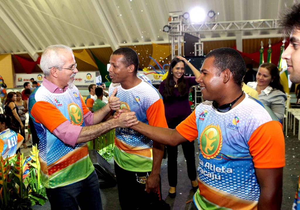 Em uma tarde de grande festa, o prefeito de Aracaju, Edvaldo Nogueira, assinou o decreto que sanciona o Projeto de Lei nº 148/2011, que põe em vigor o programa Bolsa Atleta. A solenidade reuniu autoridades, esportistas e alunos da rede pública municipal na quadra poliesportiva que atende às escolas José Antônio da Costa Melo e Neuzice Barreto.